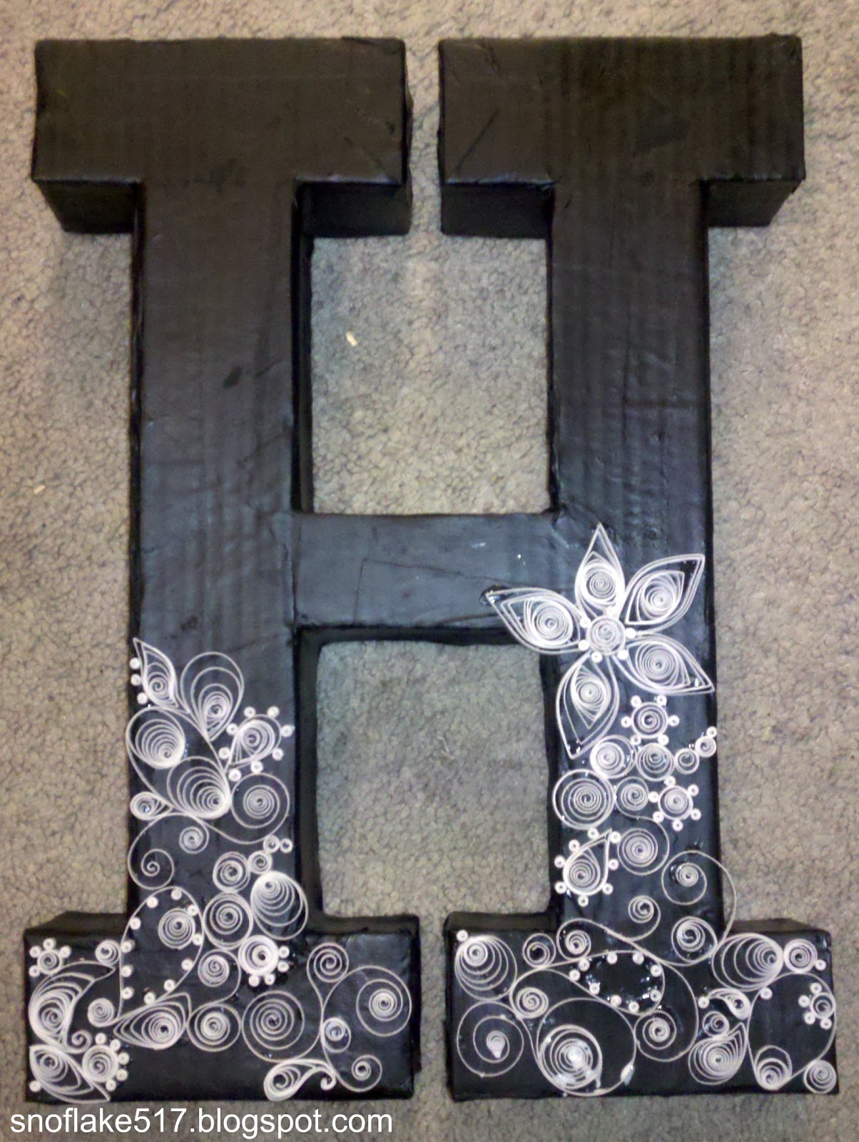 I decided not to cut all the way through the flaps on the sides of the letter so I wouldn't have to glue so many sides down. Worked pretty well! Once the H was cut out, I traced it onto the other large piece of cardboard.